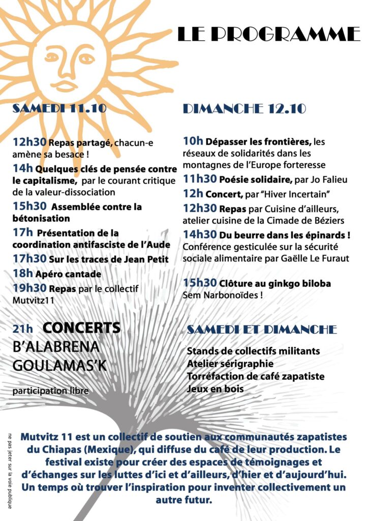 Le festival des luttes populaires accueilli à Langel est organisé par le collectif Mutvitz11 qui distribue du café zapatiste en provenance directe de coopératives du Chiapas au Mexique.
